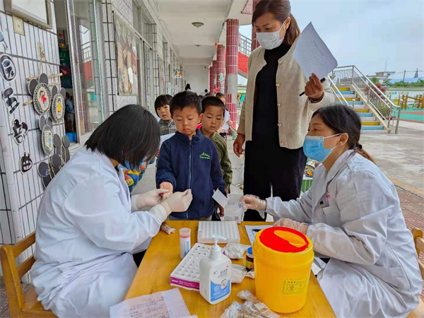 为了促进幼儿的身体健康,进一步了解幼儿生长发育状况,5月11日上午海安市妇幼保健所一行11人来到大公镇古贲幼儿园,为孩子们进行一年一度的“六一体检”。